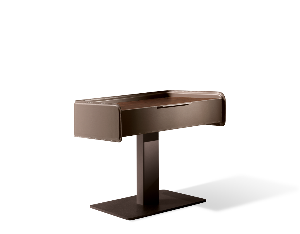 Оригинальный и элегантный прикроватный шкафчик с отделкой из седельной кожи.