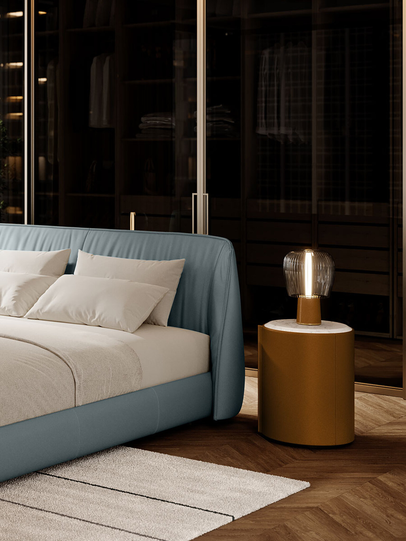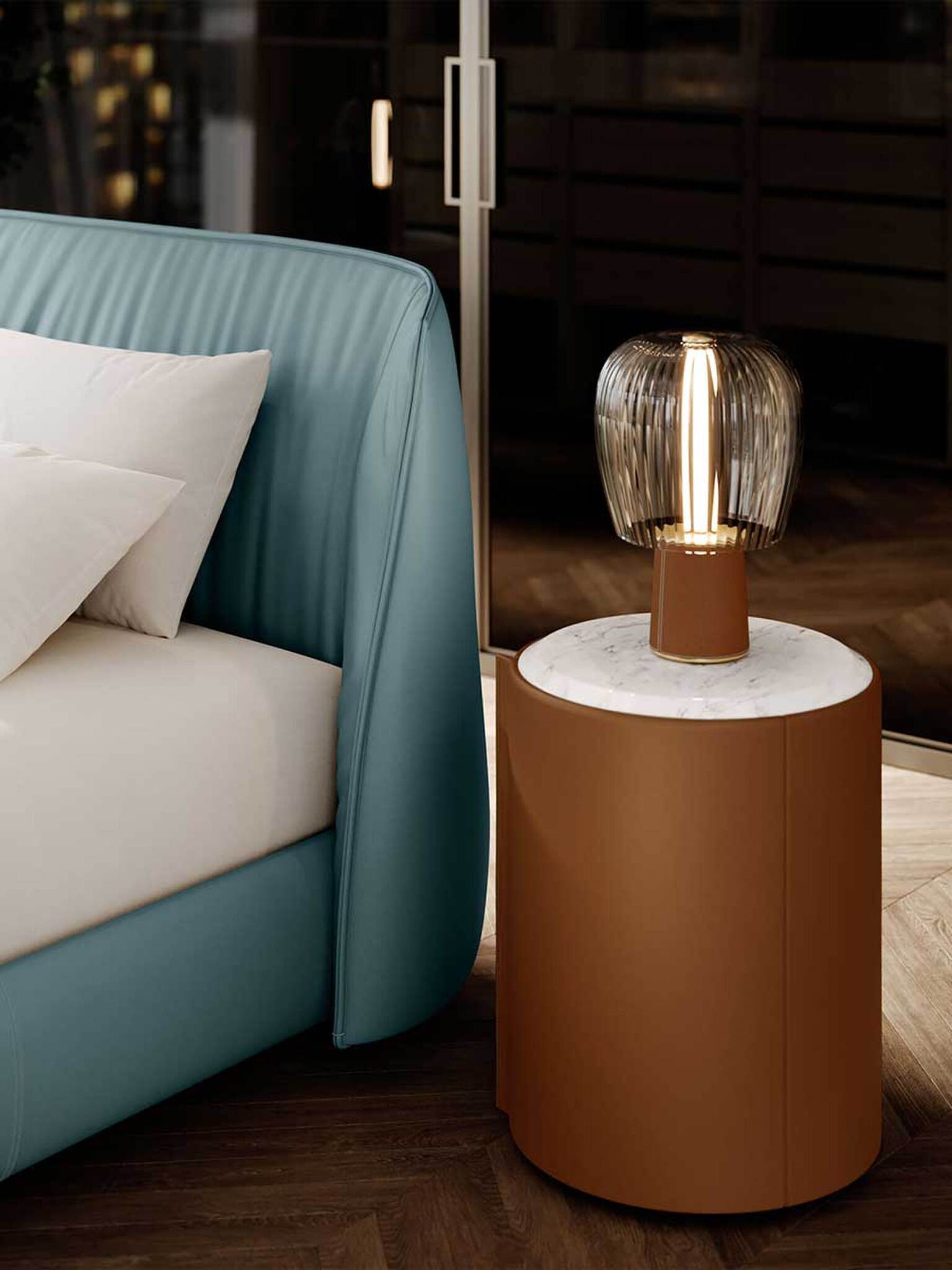Разработанный Себастьяном Херкнером, стеллаж Stock'n Roll представляет собой коллекцию предметов для хранения, вдохновленных шкатулками для драгоценностей, отличающихся элегантным, но эксклюзивным дизайном с использованием сложных деталей и роскошных материалов. Стеллаж Stock'n Roll можно поставить рядом с креслом или использовать в качестве прикроватной тумбочки по обе стороны кровати. Он имеет цилиндрическую форму, край крышки слегка отклоняется от корпуса, образуя ручку, позволяющую открыть его.