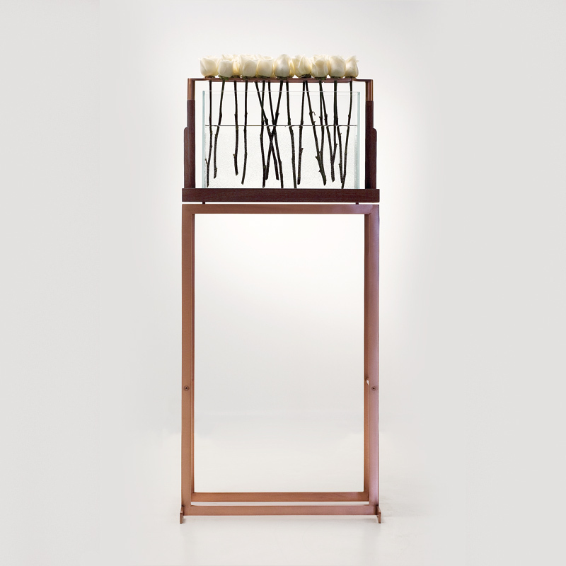 Вазы для цветов DORO 25012 в деревянной раме из цуккупиры, банка из закаленного прозрачного стекла, металлические элементы без отделки. Размеры [W x D x H] в мм: 500 x 160 x 322