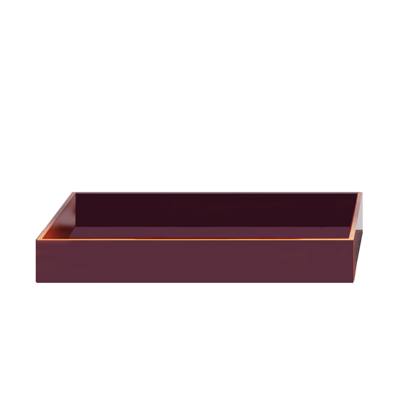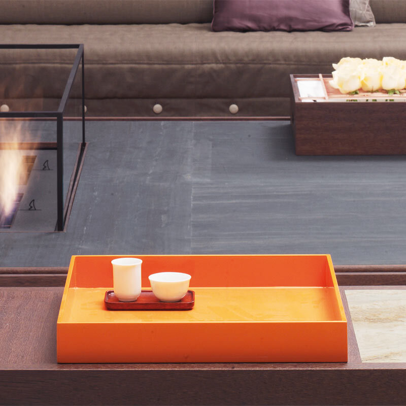 Квадратный лакированный поднос ESTI 24412 в трех цветах: оранжевом, зеленом и фиолетовом. Размеры [W x D x H] в мм: 750 x 400 x 90