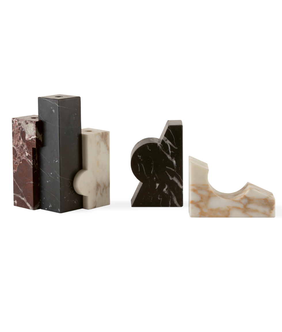 Изысканные вазы и подставки для книг, созданные путем сочетания различных видов мрамора, которые можно разделить на декоративные элементы.