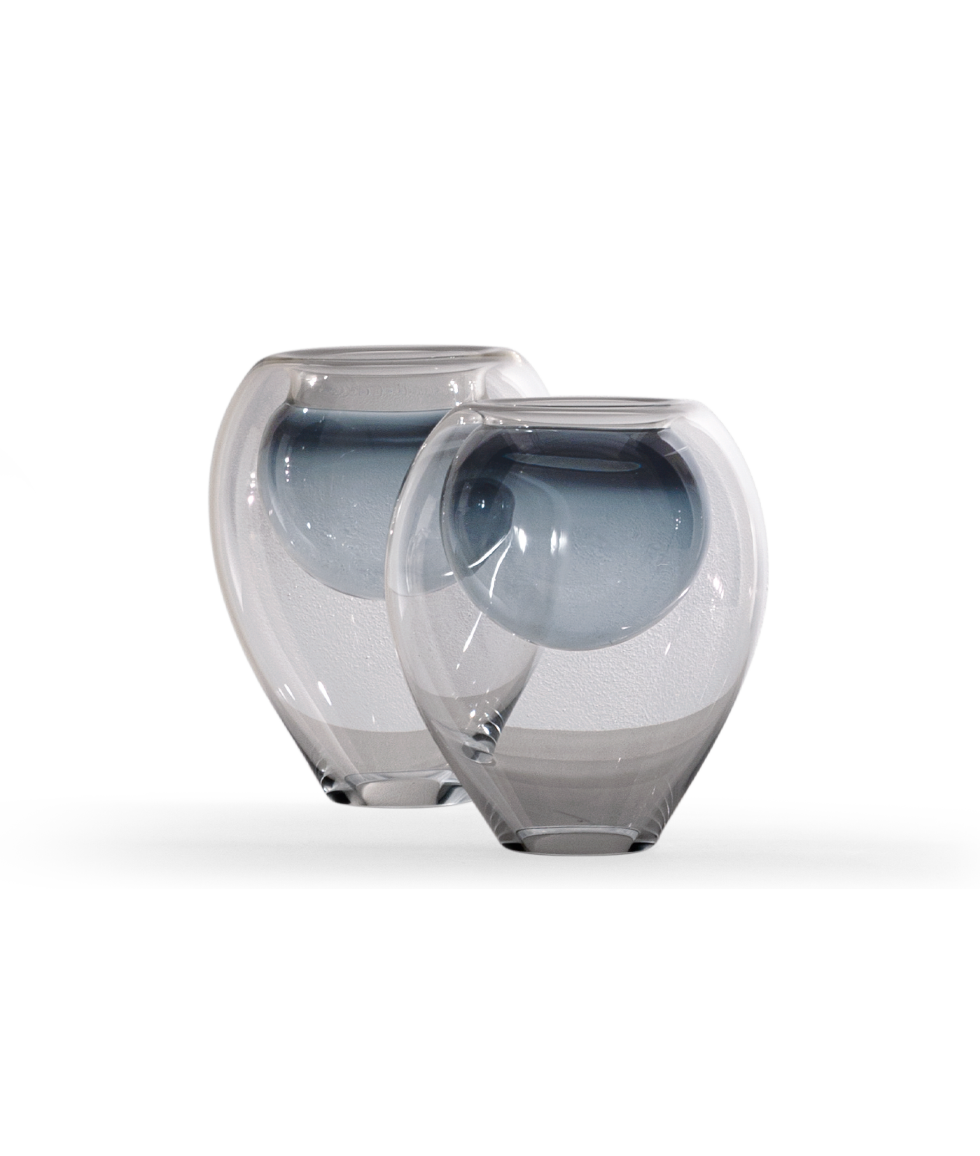 Выдувная ваза с вставленной сферой из выдувного стекла в прозрачный пузырь.